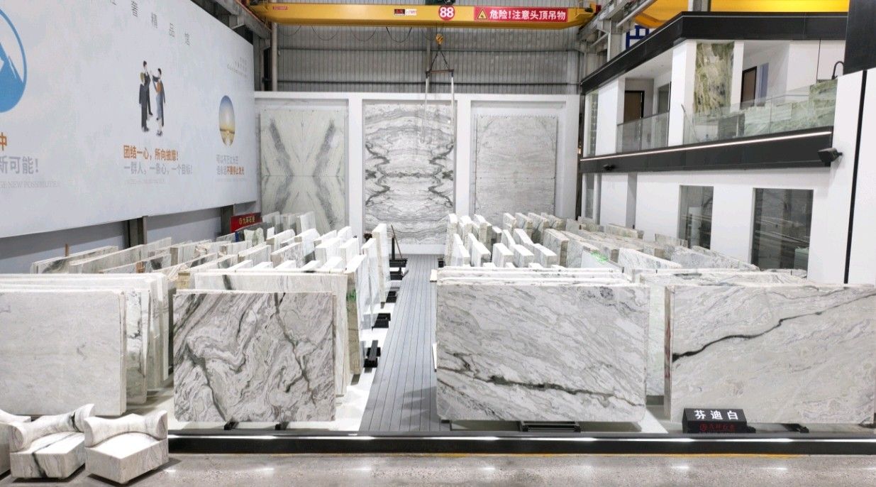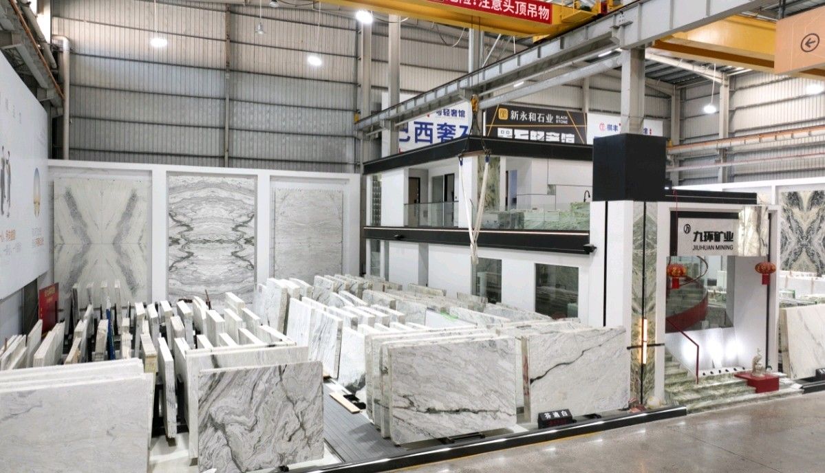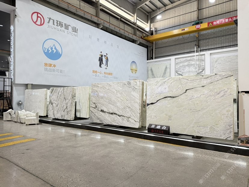 公司創(chuàng)建初期駐點(diǎn)于東升大板市場(chǎng),隨著市場(chǎng)需求,不斷進(jìn)行戰(zhàn)略布局,2016年駐點(diǎn)高時(shí)大板市場(chǎng),2017年駐點(diǎn)藝興大板市場(chǎng),同時(shí)期增加澳磊門(mén)店,2018年,九環(huán)增加遠(yuǎn)達(dá)專場(chǎng),擁有數(shù)百個(gè)架子位,憑借優(yōu)質(zhì)服務(wù)深受客戶認(rèn)可與信賴。2019年,九環(huán)于順盛增加加工點(diǎn),主要生產(chǎn)“水晶木紋”,年產(chǎn)量達(dá)15萬(wàn)平方米。該年底順勢(shì)而上,增加均利廠、新寰宇廠及振南廠三個(gè)石材加工廠,并不斷拓寬市場(chǎng)品類,由原先單一的“水晶木紋”,又增拓“印度藍(lán)金沙”與“土耳其星月白”兩個(gè)大理石品種,年產(chǎn)量接近30萬(wàn)平方米,公司經(jīng)營(yíng)得到進(jìn)一步優(yōu)化。2020年九環(huán)石業(yè)進(jìn)軍南翼點(diǎn),新增“卡索灰”及“古堡藍(lán)”兩個(gè)大理石品種,擁有自己的大型礦山開(kāi)采權(quán),自主開(kāi)采銷售,產(chǎn)品種類大幅度增加,業(yè)務(wù)領(lǐng)域進(jìn)一步拓展。2021年至今,九環(huán)石業(yè)新增澳盛點(diǎn),新增品種“卡地亞灰”包礦。至此,九環(huán)石業(yè)在“世界石都”水頭戰(zhàn)略版圖囊括了澳盛、新寰宇、東升、遠(yuǎn)達(dá)等駐點(diǎn),具備良好的區(qū)位優(yōu)勢(shì),發(fā)揮著重要的協(xié)同效應(yīng)。\