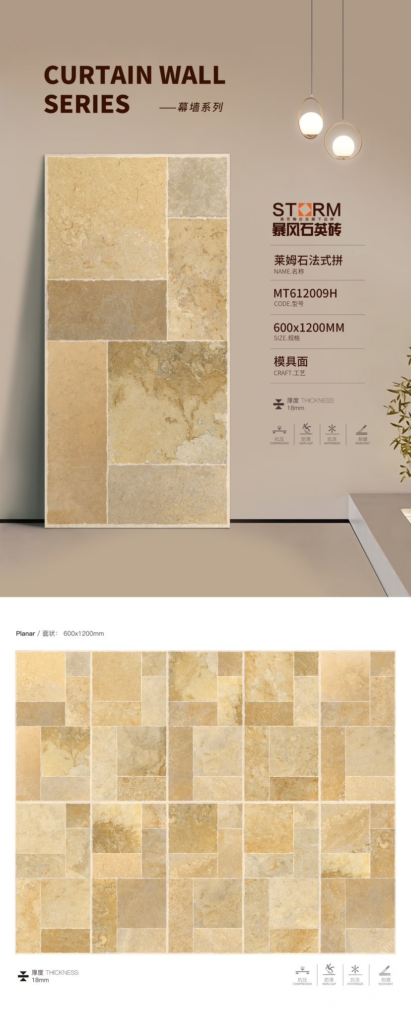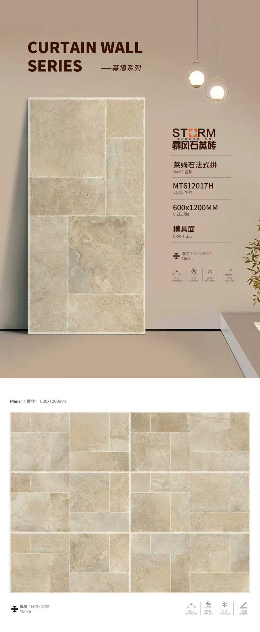 暴風(fēng)石英磚是美藝陶(福建)高新建材有限公司旗下系列產(chǎn)品,專注研發(fā)和生產(chǎn)運(yùn)用于戶外的石英磚產(chǎn)品,為商業(yè)建筑和高端住宅提供優(yōu)質(zhì)建材產(chǎn)品與應(yīng)用解決方案 。暴風(fēng)石英磚精準(zhǔn)定位為戶外用磚主營厚磚系列產(chǎn)品(1.2-3CM),并與2021榮獲“全國工程建設(shè)品牌”。\