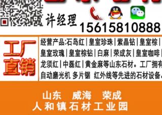 "榮成市浩大石材廠始建于2002年,駐地于榮成人和鎮(zhèn)石材工業(yè)園。我廠主要產(chǎn)品有石島紅、皇室珍珠、皇室棕、紫晶鉆、白麻、皇室玫瑰等花崗巖,可生產(chǎn)毛板、光板、工程板、火燒板、臺(tái)階石、路邊石、剁斧石、蘑菇石、線條、異型石材加工等。廣泛用于賓館、寫字樓、園林廣場(chǎng)等辦公娛樂場(chǎng)所及居室的建設(shè)裝修。我們以優(yōu)良的產(chǎn)品、優(yōu)惠的價(jià)格以及工廠良好的信譽(yù),暢銷全國(guó)各地,并出口韓國(guó)、美國(guó)、新加坡、俄羅斯、德國(guó)等國(guó)家及中東地區(qū)。