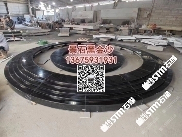 印度黑金沙花崗巖水池水景工程水池幕墻干掛背景墻定制