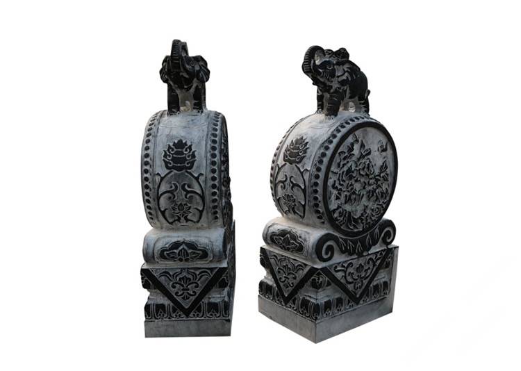 描述:抱鼓石是漢族傳統(tǒng)民居,特別是四合院的大門底部位于宅門入口、形似圓鼓的兩塊人工雕琢的石制構件,屬于門枕石的一種,因為它有一個猶如抱鼓的形態(tài)承托于石座之上,故此得名。抱鼓石是禮制建筑等級的符號象征,也是"非貴即富"的門第符號,抱鼓石絕不脫離它主人背后的政治、經濟基礎而獨立存在。抱鼓石漢族民間稱謂較多,如:石鼓、門鼓、圓鼓子、石鏍鼓、石鏡等等。抱鼓石與門簪因為在宅門門面上下遙相呼應,在漢族民間有所謂的"門當戶對"之說。